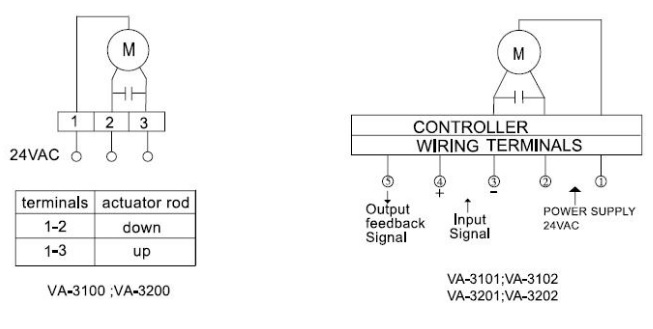 VA3100 Series Actuator, an electromechanical product can be made set with VB Series Valve body or other valves by different connectors. The power supply is 24 VAC OR 24 VDC.